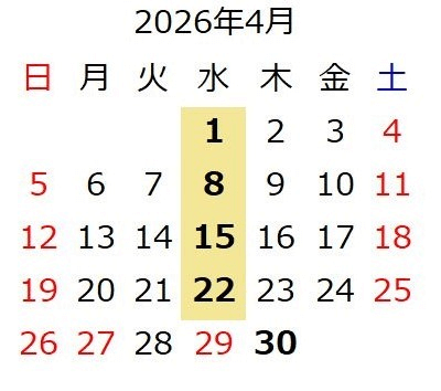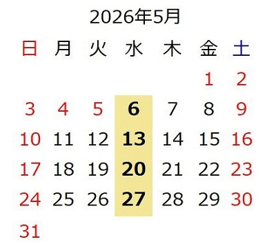 詳細は下記のカレンダーでご確認ください。(事前予約不要)