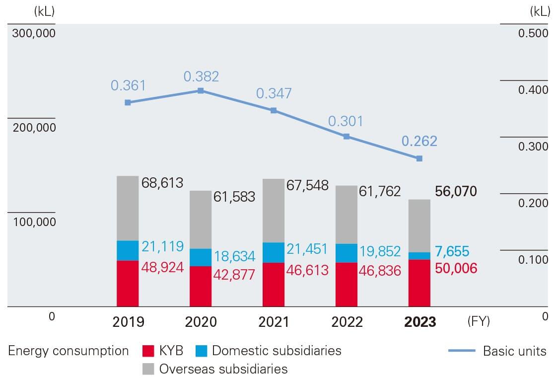 - Energy refers to the total of crude oil conversion, such as electricity and fuel. Regarding the decrease of industrial waste, the calculations exclude valuable materials (recycling or reuse) generated by initiatives to promote recycling.