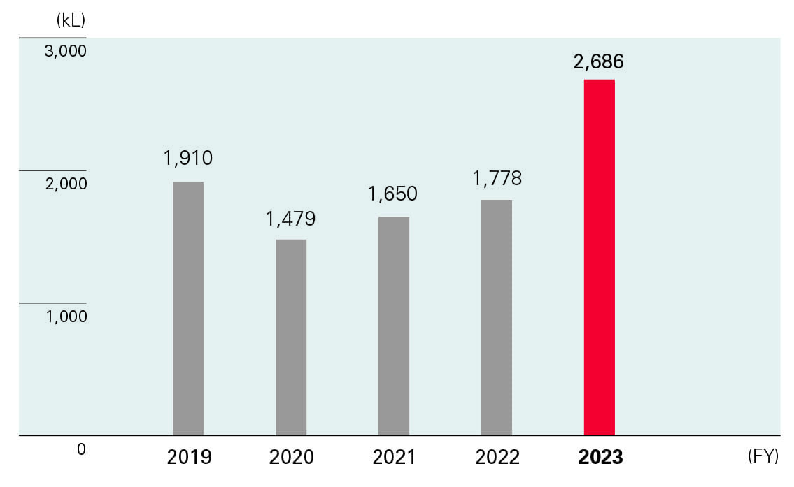 The Gifu North Plant has been supplied with this city gas by Toho Gas since March 2022, and the CO₂ emission reduction effect in fiscal 2023 was equivalent to 3,135 tCO₂/year. Since this city gas has not been officially certified, the amount of CO₂ emission offset (Scope 1) has not been recorded, but we will contribute to the realization of a carbon neutral society.