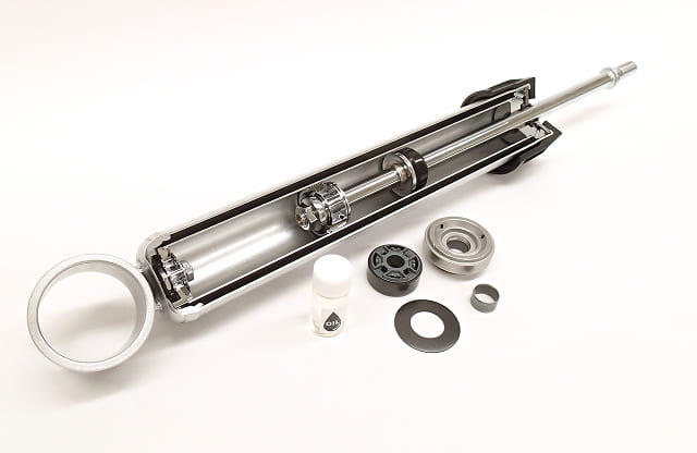 This shock absorber is equipped with a high-performance valve that generates damping force at extremely low operation speeds. It provides a high level of both stable handling and smooth ride feel.