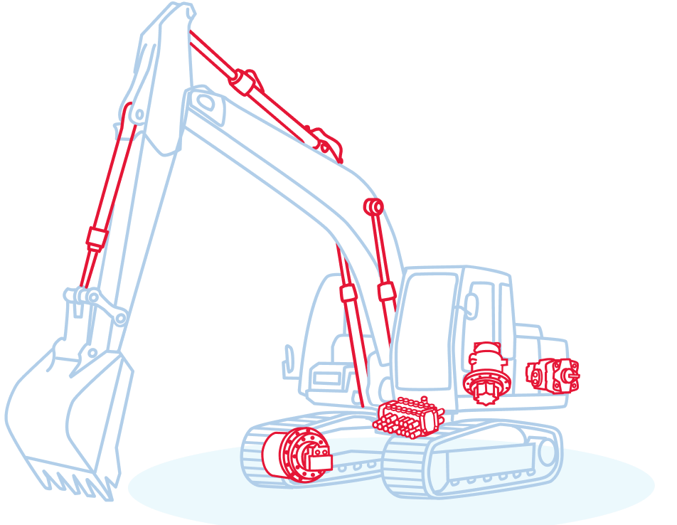 KYB components see use in construction machinery even under harsh site conditions.