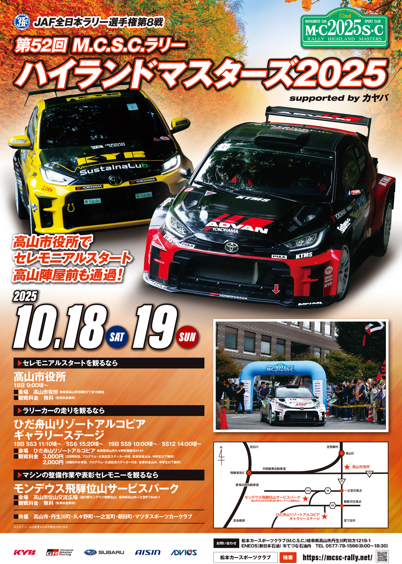 詳細につきましては「MCSCラリーハイランドマスターズ2025 supported by カヤバ」公式ホームページをご覧ください