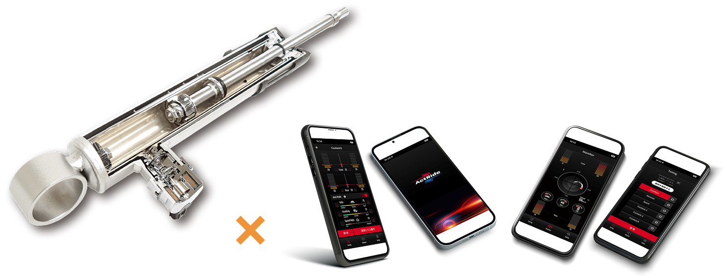 「ソレノイドバルブ」とは、ショックアブソーバ本体と一体化された専用部品で、スマホから送信された設定内容に応答し、車両挙動から算出した最適減衰力を瞬時に実現します。
