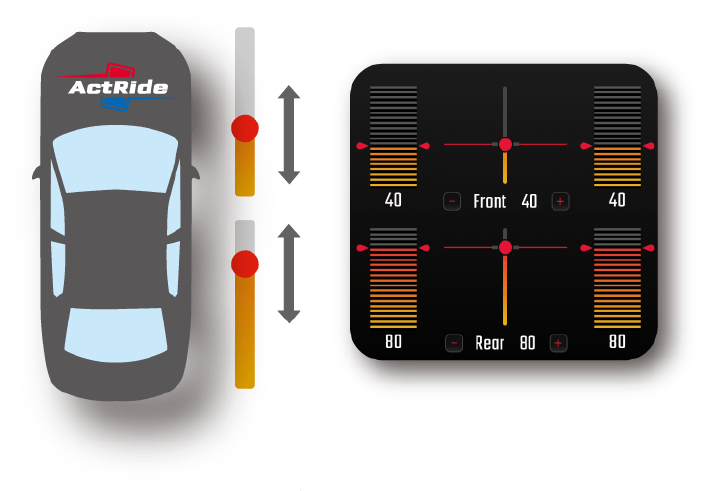 ベビーカーに振動対策が施されているように、小さな子供が同乗する車にもActRideで同様の対策を。悪路を走る時はもちろん、通常走行時でも乗り心地重視の設定にすることで柔らかな乗り味になります。「眠っている子供を起こしたくない」時にも効果的です。