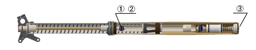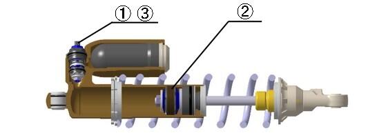 ① 大径ベースバルブ構造(小さな路面入力から一様な吸収性向上)